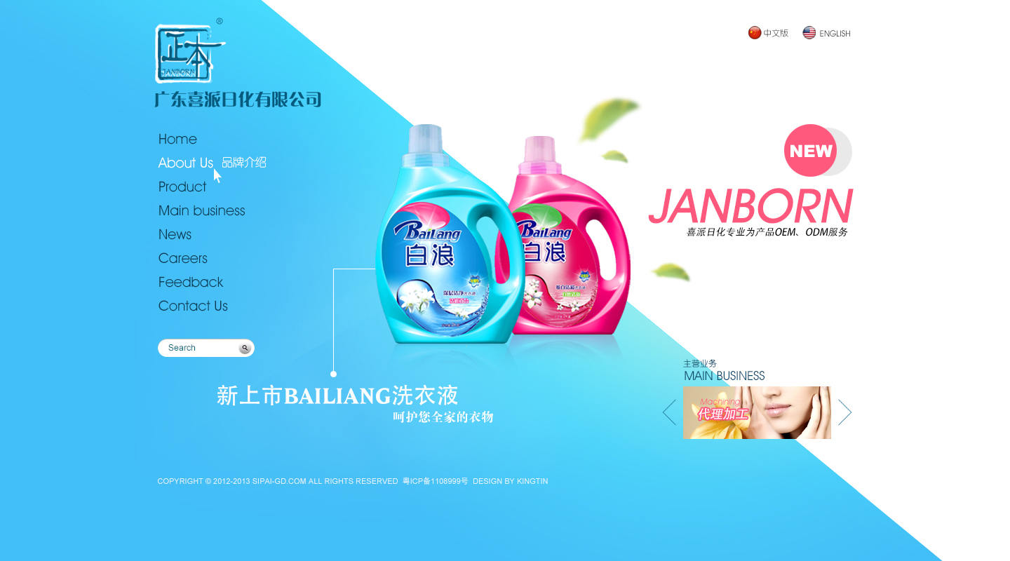 廣東(dōng)喜派日(rì)化(huà)有(yǒu)限公司始建于 β2003年(nián)初。公司領導勇于開(kāi)拓創新和(♦$←₩hé)銳意進取,聚集了(le)一(yī)大(←™↔dà)批業(yè)內(nèi)高(gāo)素質的(de)專業(yèγ &₹)科(kē)研隊伍,引進了(le)國(guó)際先進的(de)設備和(hé$δ$★)技(jì)術(shù),擁有(yǒu)現(xiàn)代化(hγ♠uà)的(de)生(shēng)産廠(chǎng)÷₹房(fáng)、無菌生(shēng)産車(chē)間(jiān)、實驗中心、↑•産品檢測中心等硬件(jiàn)設施,并創×↑∑©立了(le)自(zì)己的(de)主打品牌—“←正本”。2005年(nián)“正本”被評為(wèi™∏)中國(guó)質量信用(yòng)企業(yè)AAA+γ÷。“正本”的(de)主導産品有(yǒu):洗發水(shuǐ)、沐浴露、香皂、 Ω₽啫喱水(shuǐ)、護發素、洗潔劑、護膚品、特殊護理(lǐ)護膚品以及功效φ$§型護膚品等其它日(rì)用(yòng)産品也(yě)正在積極研發中。→∞
