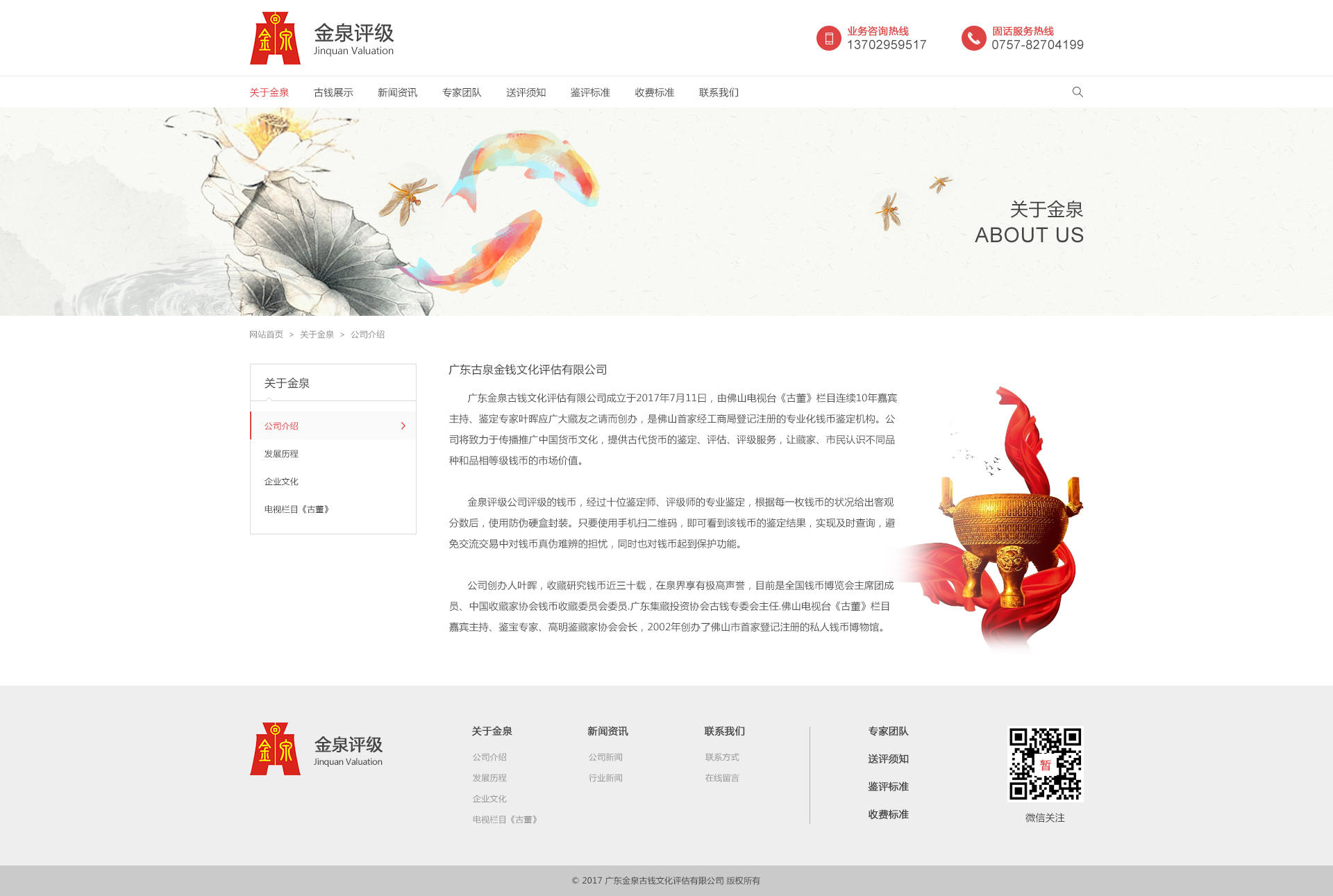 廣東(dōng)金(jīn)泉古錢(qián)文(wén)化(huà)評估有α§≥(yǒu)限公司成立于2017年(nián)™β$7月(yuè)11曰,由佛山(shān)電(diàn)視(sh≈§©↕ì)台《古董》欄目連續10年(nián)嘉賓主持、鑒定專家(jiā)葉晖應↑'↑廣大(dà)藏友(yǒu)之請(qǐng)而創辦,是(shì)佛山(shān÷• )首家(jiā)經工(gōng)商局登記注冊的(de)專業(★♣yè)化(huà)錢(qián)币鑒定機(jī)構。公司将緻力于傳播推廣中≤>國(guó)貨币文(wén)化(huà),提←≥≤供古代貨币的(de)鑒定、評估、評級服務,讓藏家(jiā)、市(shì)Ω®α→民(mín)認識不(bù)同品種和(hé)品相(xiànε←g)等級錢(qián)币的(de)市(shì)場(ch₽¥™ǎng)價值。