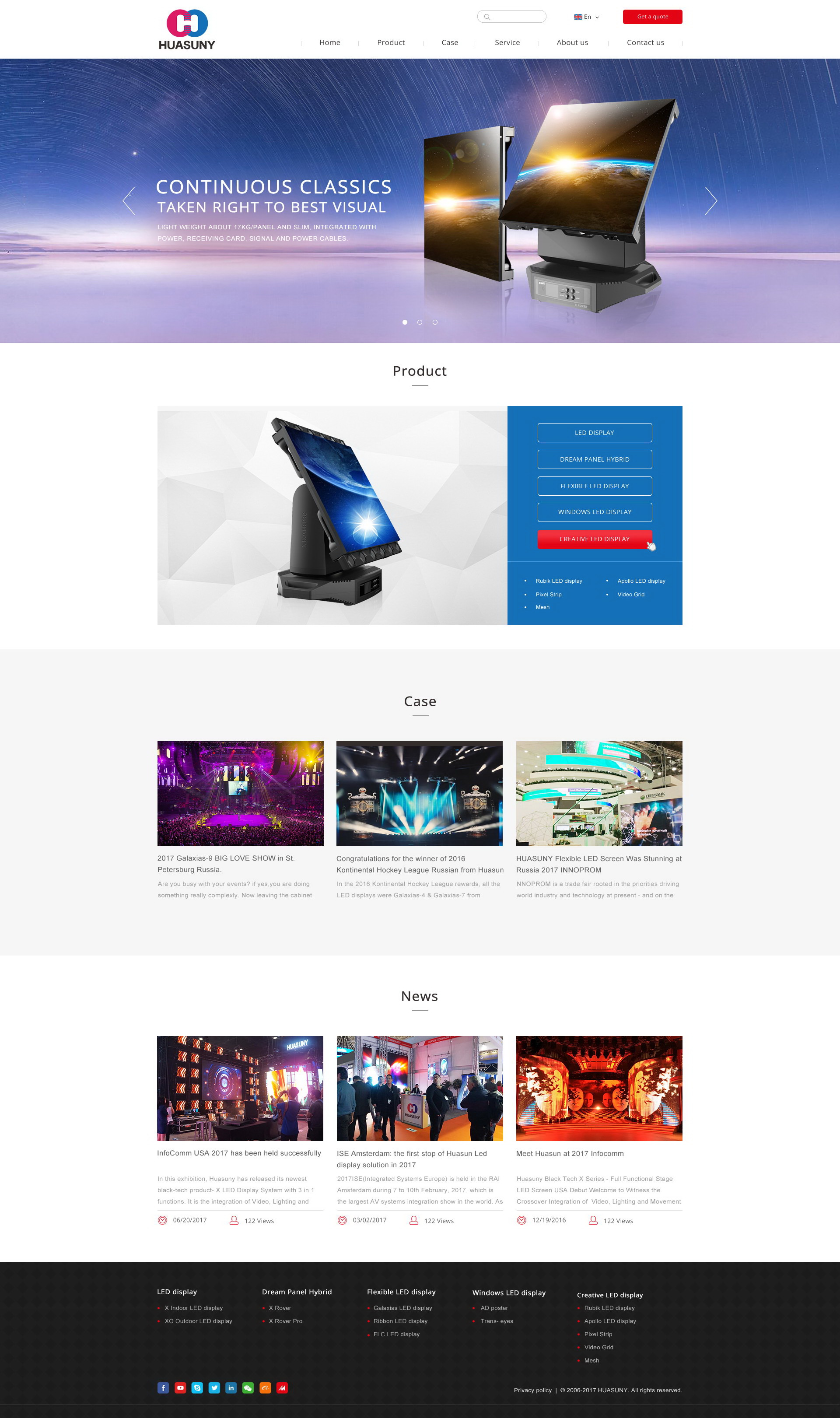 HUASUNY公司于2006年(nián)成立于中國(gu™φó)北(běi)京,2012年(nián)遷移至廣東(d ∑>ōng)省佛山(shān),是(shì)全球領先ε≥的(de)集研發、生(shēng)産、銷售、服務于一(yī)體✘✔(tǐ)的(de)LED顯示屏供應商。主要(yào)聚焦于柔性LED顯示屏、智→α>♥能(néng)LED顯示屏、創意LED顯示屏的(de)研發和(h♣ <é)生(shēng)産,為(wèi)客戶提供系•© 統解決方案和(hé)服務,目前在柔性LED顯®✘φ示屏, 智能(néng)LED顯示屏領域居于世界<™π領先地(dì)位。