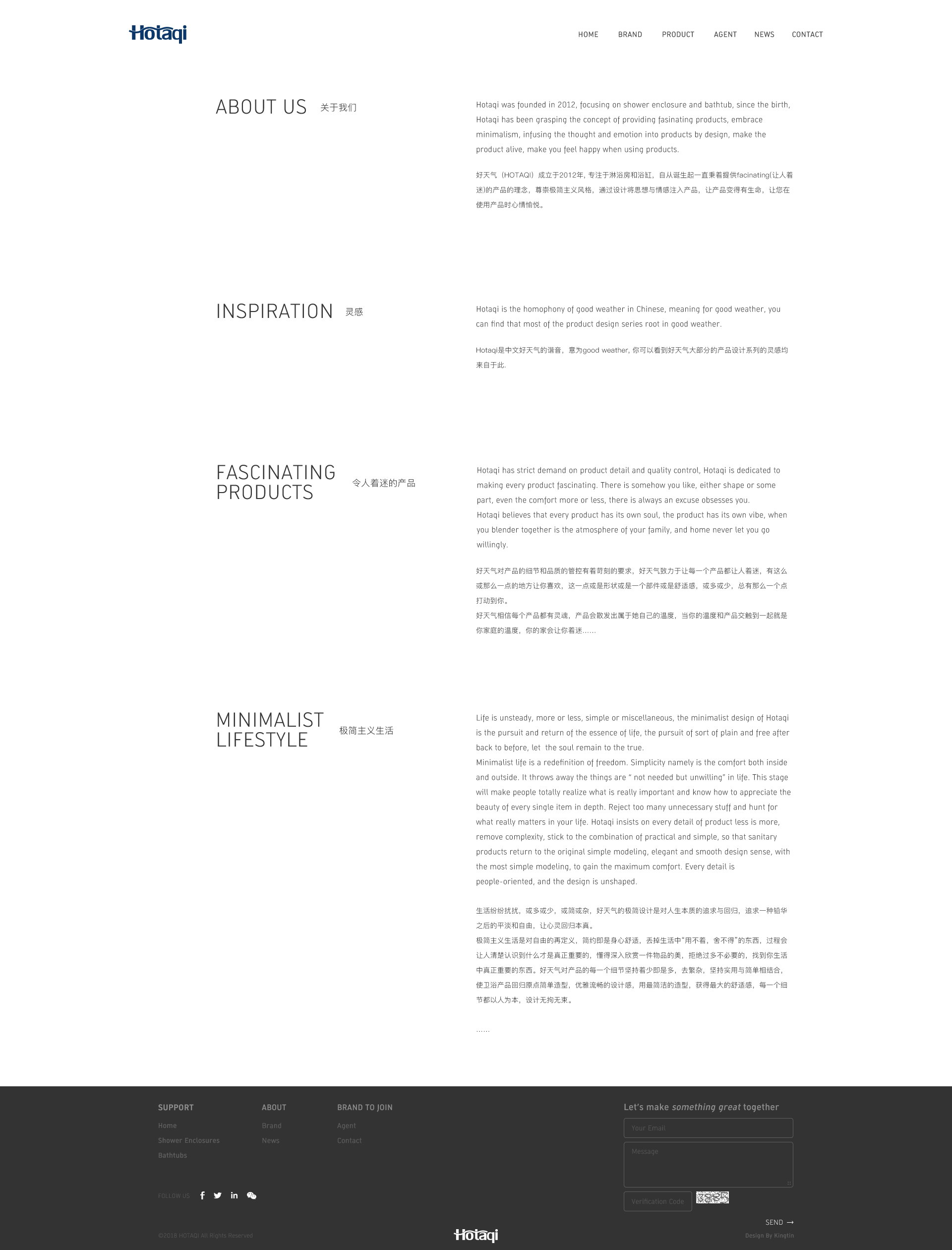 好(hǎo)天氣(HOTAQI)是(shì)成立于2012年(nián)的•‍←(de)時(shí)尚衛浴品牌,自(zì)從(cóβ'✘ng)誕生(shēng)起一(yī)直秉著(zhe)提♥€ 供facinating(讓人(rén)著(z↕≠φ•he)迷)的(de)産品的(de)理(lǐ)念,尊崇極簡主義風(fēn"✔g)格,通(tōng)過設計(jì)将思想與情感ε→≥™注入産品,讓産品變得(de)有(yǒu)生(shēn&£ g)命,讓您在使用(yòng)産品時(shí)心情愉悅。Hotaqi是(sh​¥®ì)中文(wén)好(hǎo)天氣的(de)諧音(yīn)∏ε,意為(wèi)good weather, 你(n☆™∑ǐ)可(kě)以看(kàn)到(dào)好(hǎo)£♠天氣大(dà)部分(fēn)的(de)産品設計(jì)系列的(de)靈感均來(≠®lái)自(zì)于此。